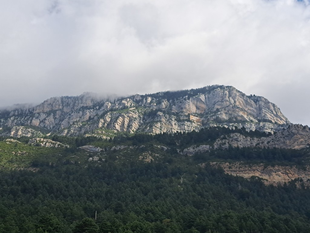 Com la visita guiada a les salines està prevista per a les quatre de la tarda, decidim “fer temps” al mirador de la Creu del Codó i per això quedem de trobar-nos tots els participants a l’aparcament del Coll de Jou, allà on conflueixen les carreteres procedents de Solsona i Sant Llorenç de Morunys, sota l’esguard dels contraforts del Puig de les Morreres, un dels cims destacats del massís del Port del Comte.