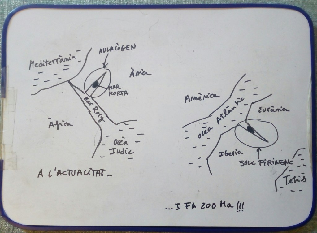 Aquí comencen les explicacions geològiques sobre l’origen de les sals que s’exploten a Cambrils i que resulta que es podrien haver format en un ambient semblant al de l’actual Mar Morta, la qual ocupa el centre d’un aulacògen, un dels “braços” avortats del Mar Roig, i que es troba a uns 400 metres per sota del nivell de la Mediterrània… és el punt més baix de la Terra. El Solc Pirinenc (la conca que va donar lloc a l’actual Pirineu) que també va ser, al seu dia, un aulacògen, un “braç” avortat de l’actual oceà Atlàntic i que va acollir una (o diverses) “mars mortes” dins el marc de trencament del supercontinent de Pangea, ara fa uns 200 milions d’anys…quasi res!