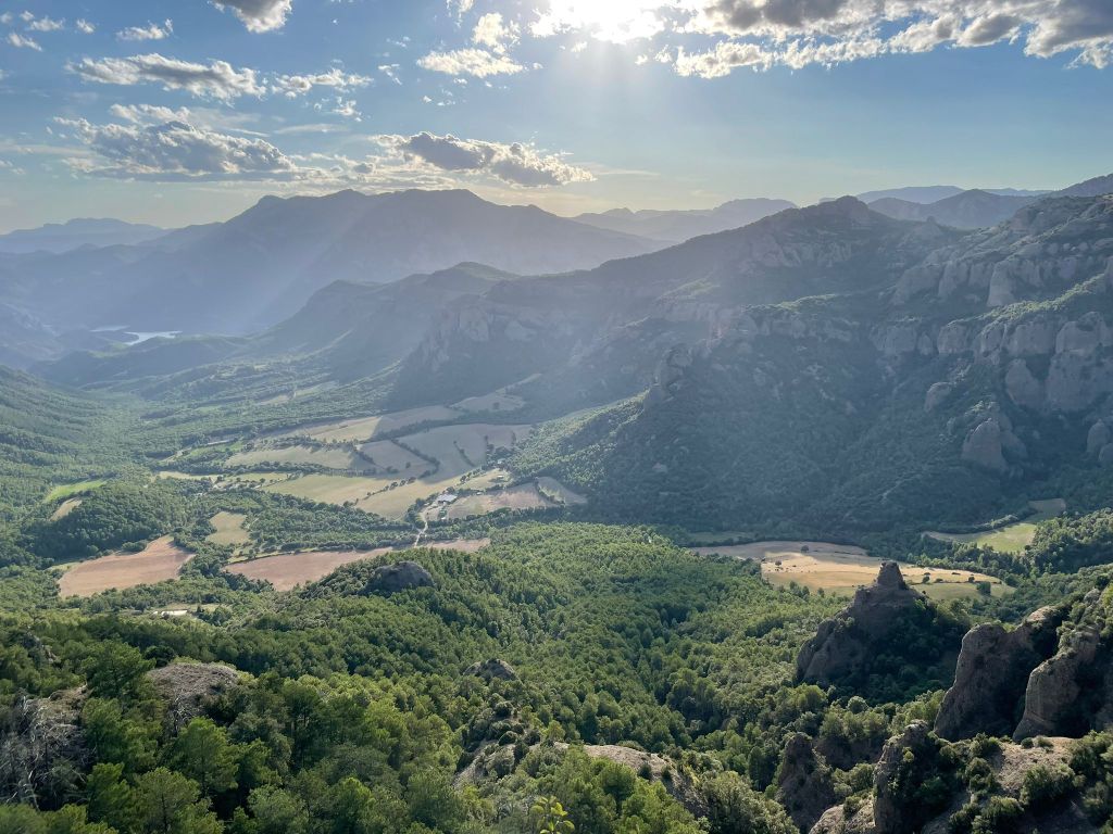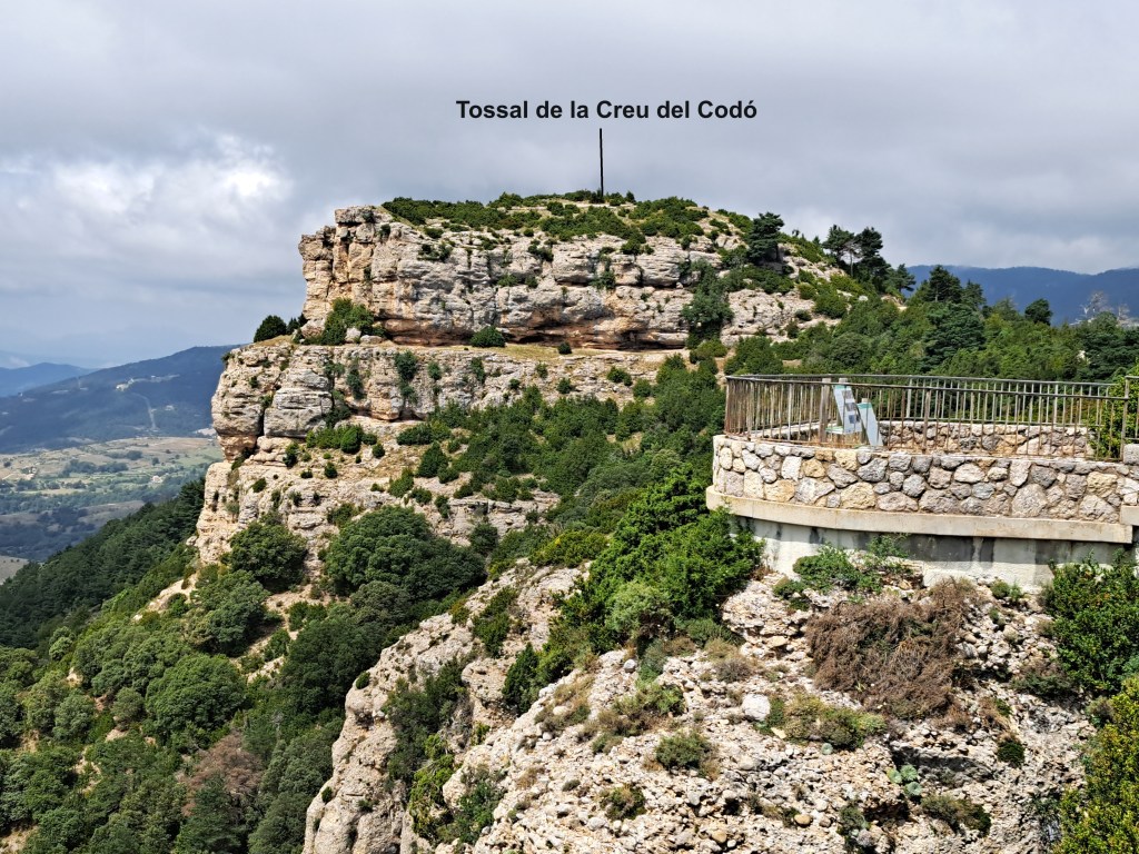 Conforme van arribant la resta de participants, la boira es va esvaint deixant al descobert un paisatge extraordinari. I és que ens trobem just al límit entre el Pirineu i la Conca de l’Ebre. Però per a explicar aquesta particularitat geològica, ens traslladarem al mirador de la Creu del Codó, situat a uns 2 km del coll. Primer per una pista asfaltada que arriba a un altre aparcament, amb àrea de lleure, i després per una pista de terra que rodeja el vessant llevantí del tossal de la Creu del Codó on hi ha una zona d’escalada esportiva.