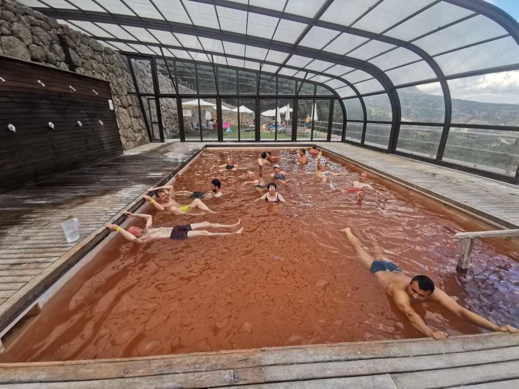 Acabada la visita, i després d’agrair a la Srta. Sílvia el seu bon guiatge, anem corrent als vestuaris per a posar-nos els banyadors i entrar a la piscina semicoberta d’aigua salada, experiència que només uns pocs del grup poden explicar.