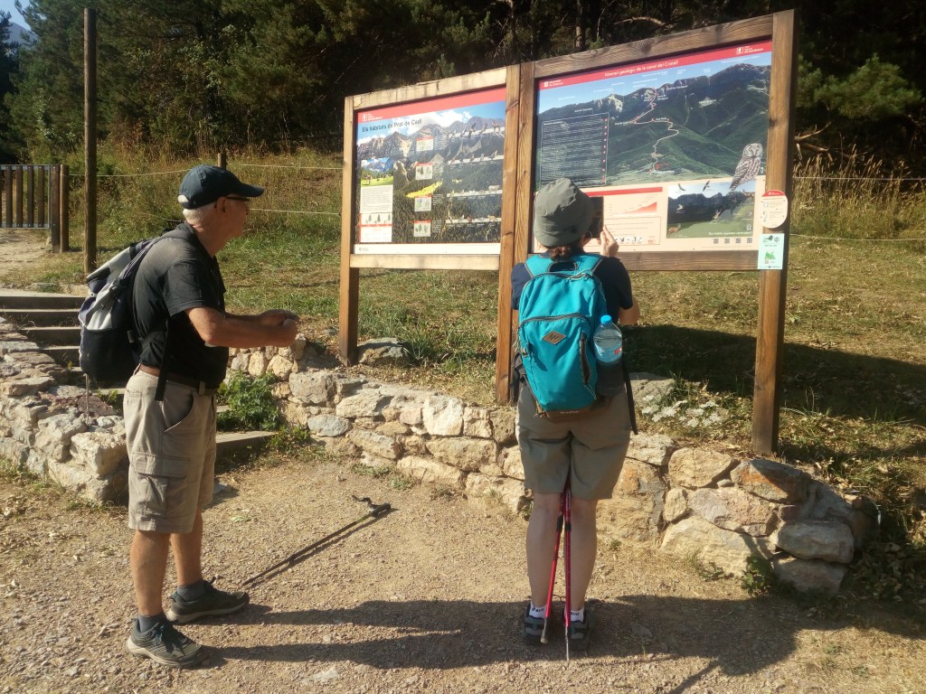 A l’entrada del camí a Prat de Cadí, tenim un parell de plafons informatius, un d’ells de caràcter geològic i que ens anticipa el que veurem: les dacites del Carbonífer superior; les lutites, gresos i conglomerats del Carbonífer superior i Permià, els conglomerats de la base del Triàsic (ja de l’era Secundària); i el curiós origen de Prat de Cadí… Som-hi doncs!