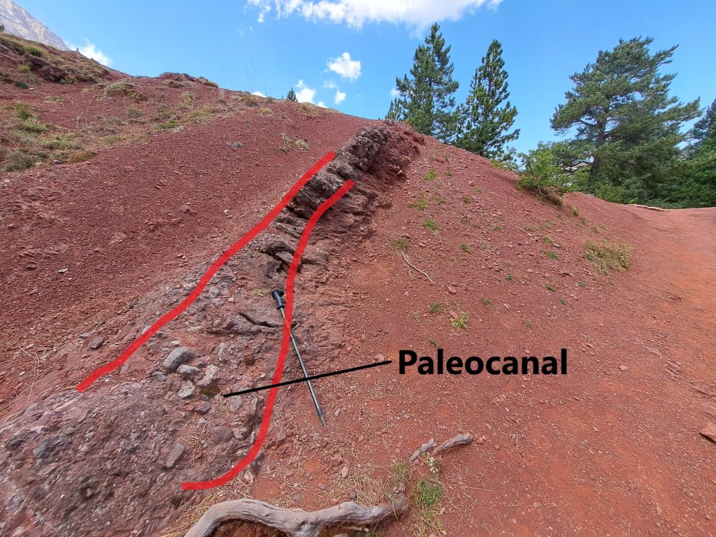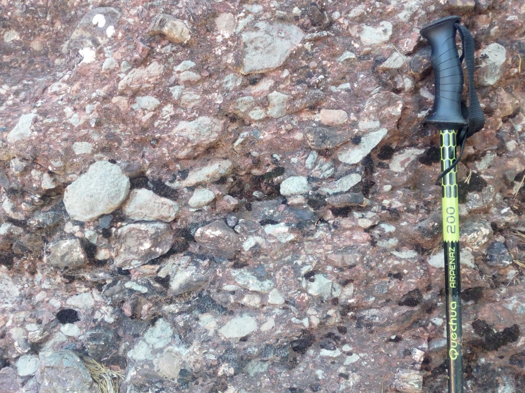Des d’aquí i fins al Collet Roig van aflorant paquets de conglomerats, corresponents a canals fluvials, amb abundància de còdols carbonàtics procedents de l’erosió de paleosòls rics en calitx, això és, acumulacions de carbonat càlcic al voltant de les arrels de les plantes i que precipita per la transpiració d’aquestes.