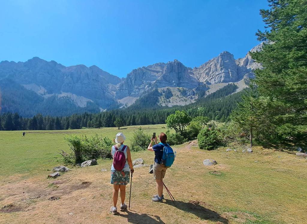 L’arribada a Prat de Cadí és sobtada, un magnífic regal per a la vista i que mereix l’esforç realitzat. De cop ens trobem enmig d’un prat semicircular i davant les muralles d’una fortalesa que sembla inexpugnable i que van inspirar els versos de Jacint Verdaguer al poema Canigó (cant VI): Alta muralla d’un castell de titans és eixa serra…. Restem bocabadats una bona estona.