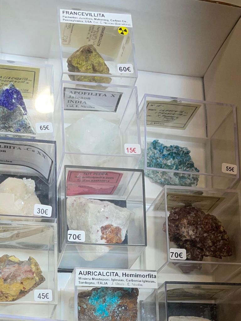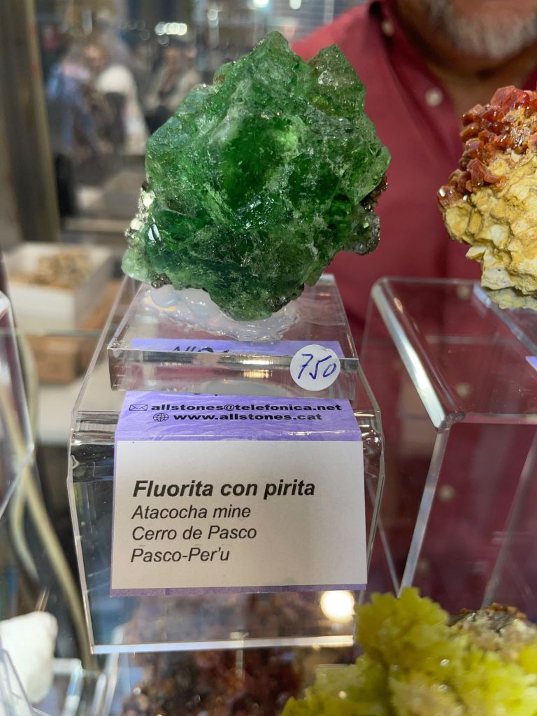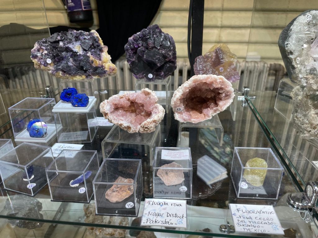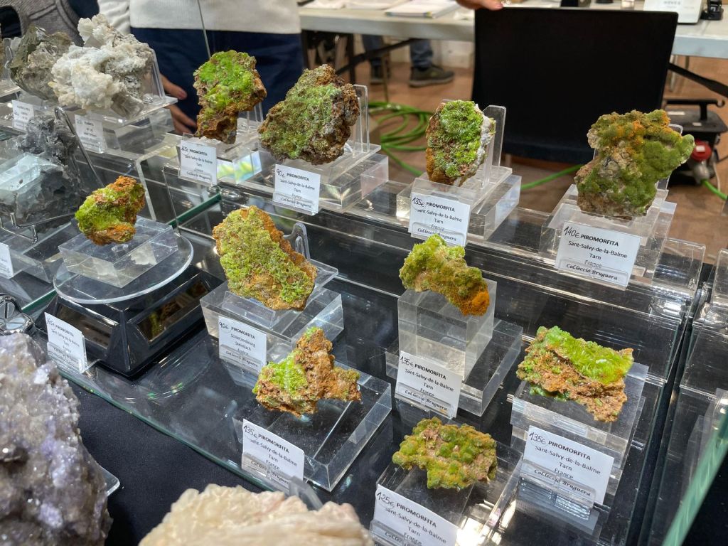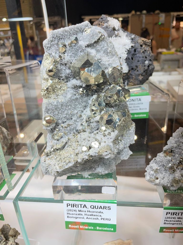 Com sempre, es va poder gaudir d’una gran varietat de minerals de totes les mides i per a totes les butxaques, així que era difícil que algú marxés a casa sense la seva mostra. Cal dir que enguany potser no hi havia moltes novetats, encara que sí n’hi havia alguna, sobretot en l’àmbit català. Però el que sí que es podien trobar de nou són minerals de col·leccions emblemàtiques com la de duplicats de Joaquim Folch o la de Joan Viñals, adquirides fa anys per col·leccionistes que ara les han tornades a posar a la venda.