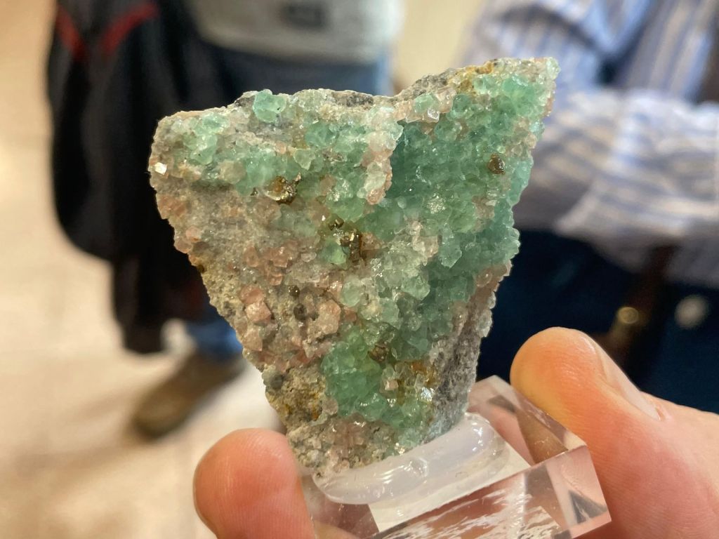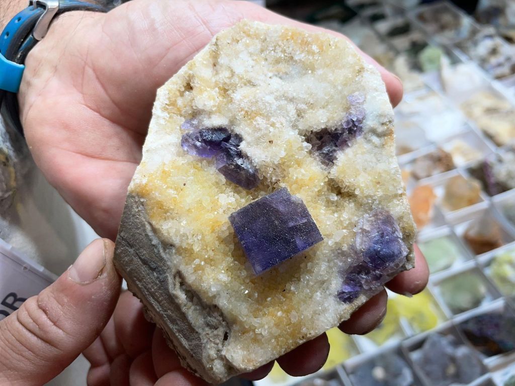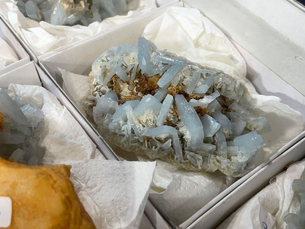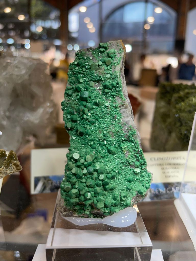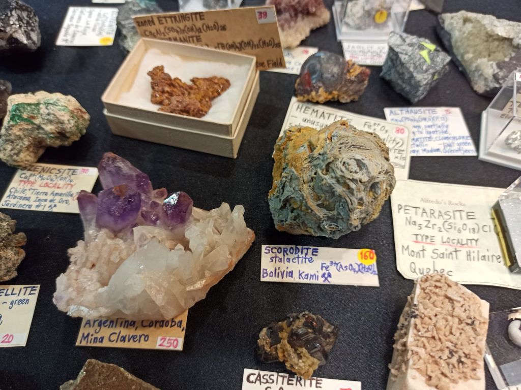 Com sempre, es va poder gaudir d’una gran varietat de minerals de totes les mides i per a totes les butxaques, així que era difícil que algú marxés a casa sense la seva mostra. Cal dir que enguany potser no hi havia moltes novetats, encara que sí n’hi havia alguna, sobretot en l’àmbit català. Però el que sí que es podien trobar de nou són minerals de col·leccions emblemàtiques com la de duplicats de Joaquim Folch o la de Joan Viñals, adquirides fa anys per col·leccionistes que ara les han tornades a posar a la venda.