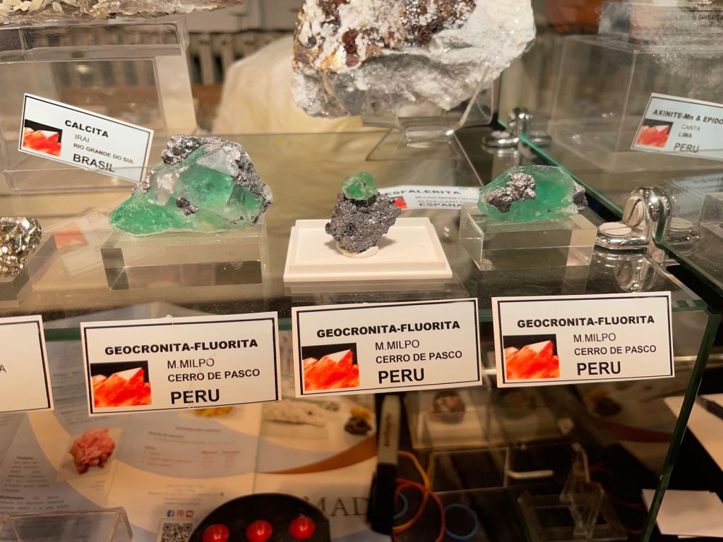 Cal remarcar que hi havia exemplars de quasi arreu del món, com ara el Brasil, on cal destacar boniques mostres de beril, moscovita, topazi i turmalina de Minas Gerais o ludlamita de São Gabriel de Cochira. Del Perú, bons exemplars de perovskita, hutchinsonita, clinoatacamita i fluorita amb geocronita o pirita. De l’Argentina, microclina i quars ametista; de Bolívia, vivianita, les ja clàssiques cassiterites i una estalactita d’escorodita molt especial. També mostres de Namíbia, com ara beril amb schorl d’Erongo o dioptasa de Tsumeb. De dioptasa també se’n van poder veure d’antigues, obtingudes als anys 70 a Mindouli, República del Congo, així com una bonica piromorfita de Kipushi, República Democràtica del Congo. Per últim, destacar algunes escapolites d’un intens color violeta de Afganistan així com exemplars de fluorita rosa del districte de Nagar, Pakistan.