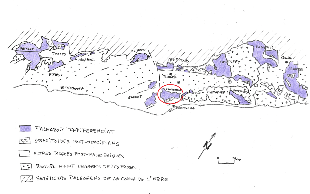 Abans d’iniciar l’itinerari circular que ens portarà a fer una volta completa al Puig d’Olorda, se’ns mostra un esquema de com es va formar el supercontinent Pangea després de la col·lisió, ara fa uns 300 milions d’anys, de dues masses continentals (Lauràsia i Gondwana) i de com es va aixecar la Serralada Herciniana com a conseqüència de la tal col·lisió. Actualment aquesta serralada ja no existeix i només resten alguns massissos aïllats i escampats per mig món després del seu total desmantellament. Ara ens trobem a l’extrem SW del massís de Collserola, damunt una estructura en forma de sinclinal complex, al nucli del qual es troben les calcàries que avui visitarem.