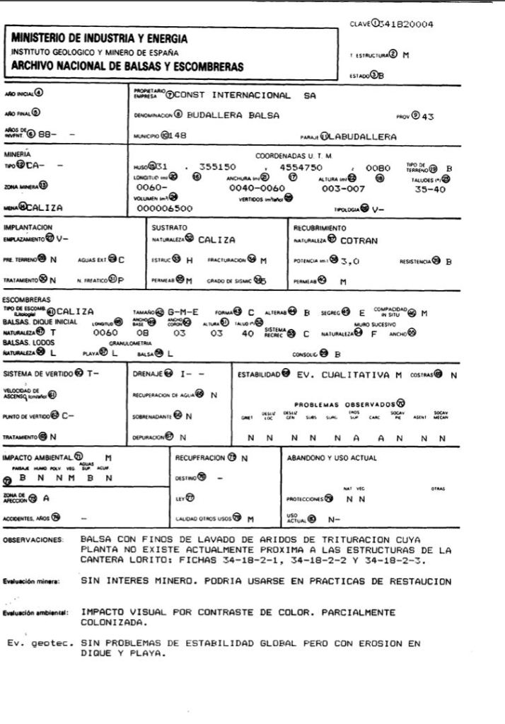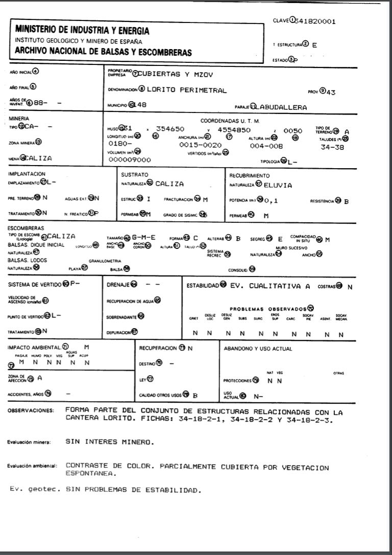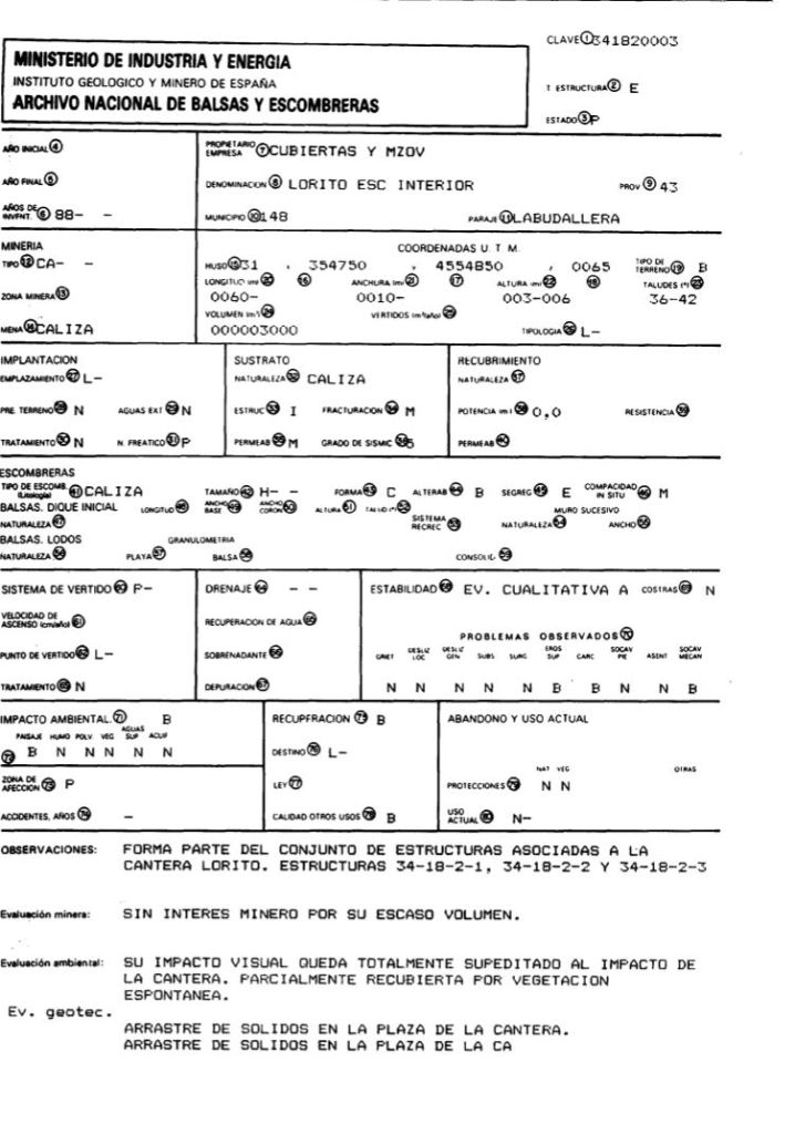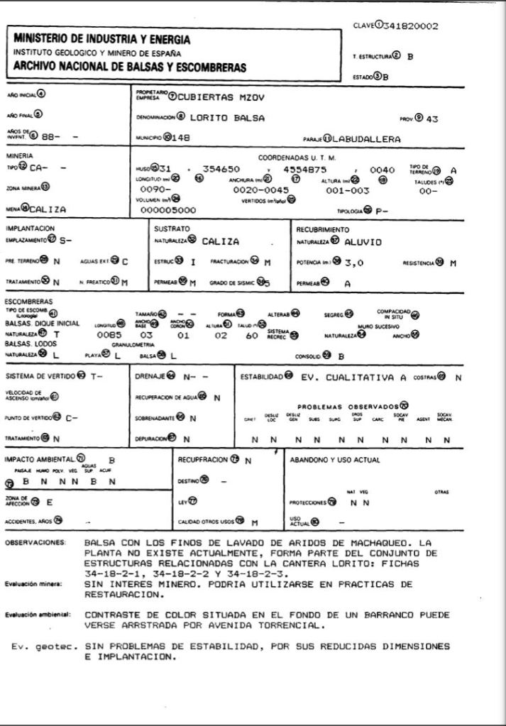 L’empresa titular de l’explotació per a la concessió “Lorito”, segons consta, era Cubiertas y MZOV (va començar a operar amb aquest nom el 1978). Per l’anomenada “Budallera” (balsa) Construcción Internacional. És possible, i més tenint en compte el volum de profunditat de la pedrera que es pot observar, que hagués estat operativa fins i tot un xic abans del registre d’aquestes empreses, tot i que no es deu remuntar gaires anys abans. La gestió de la part de pedrera destinada a abocador la portava directament l’ajuntament de Tarragona.