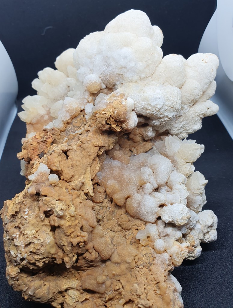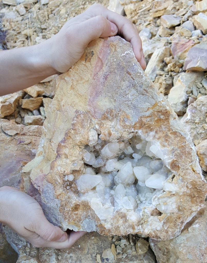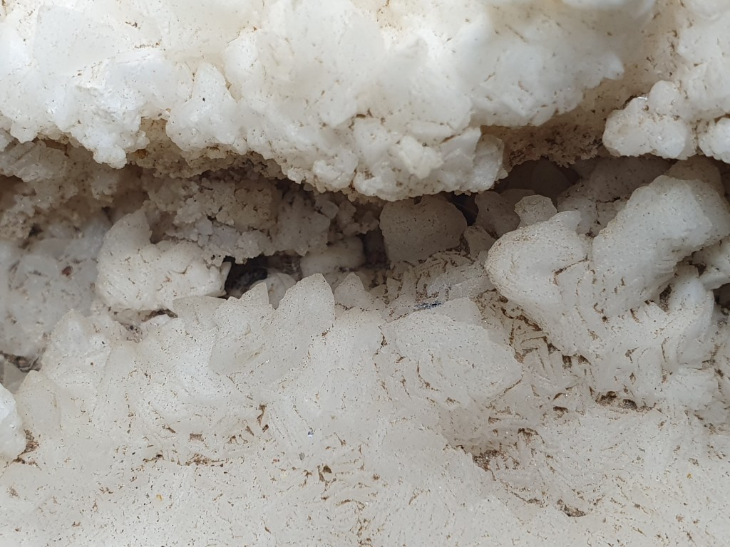 En aquest context geològic és on es formen les mineralitzacions que trobem. Cal fer una distinció entre dos grans grups: cristalls i espeleotemes. La calcita és un mineral molt comú que es forma per precipitació química de solucions molt riques en carbonat de calci. Per entendre aquest procés, cal saber que en ambients càlids (tan per estar en latituds tropicals com per la proximitat d’ambients termals) on el CO2 és alliberat a l’atmosfera, la solubilitat del CaCO3 baixa i, per tant, precipita formant les estructures de calcita. Aquestes es poden donar dins geodes, o entapissant grans extensions de blocs fracturats per on han pogut circular fluids rics en aquest compost.