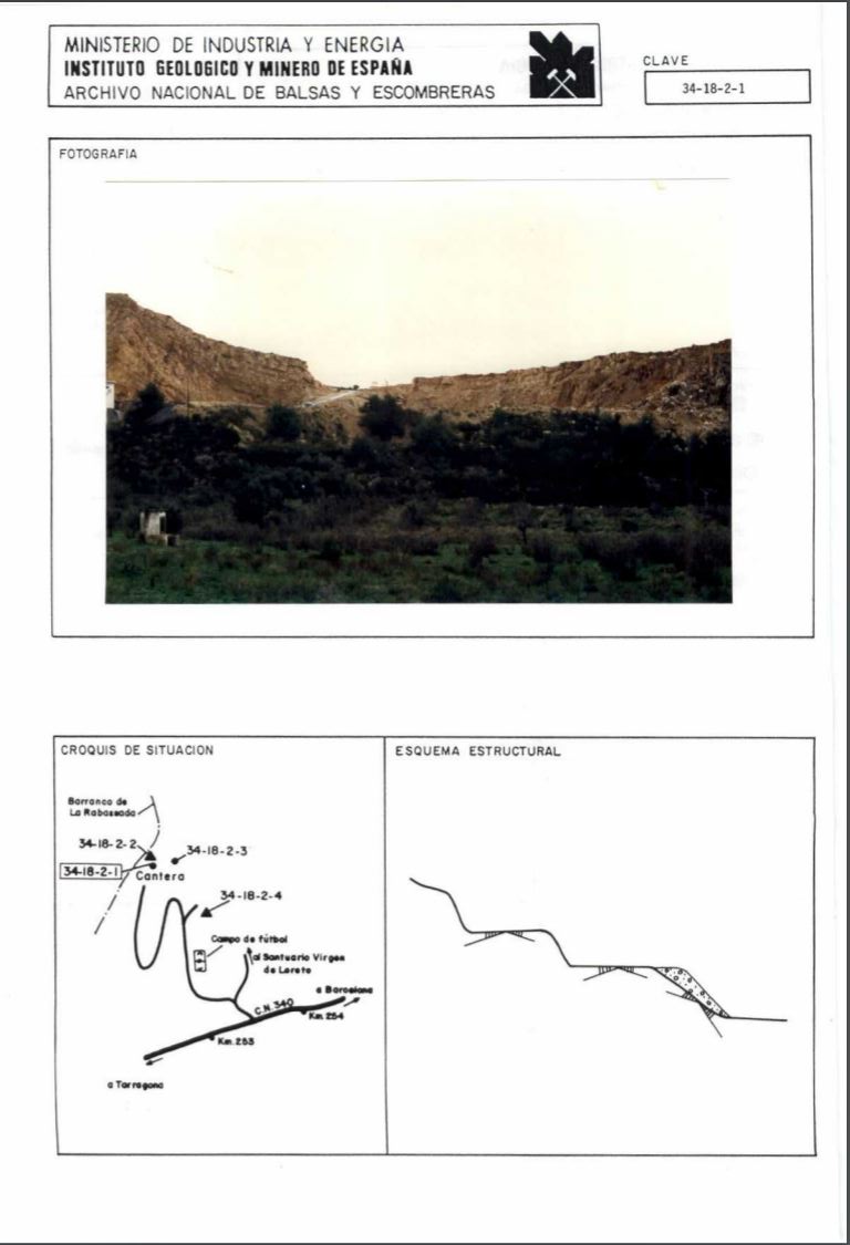 Durant unes dècades marquen el paisatge de la zona, que veu com les successives ampliacions deixen un fort impacte ambiental, fins al moment que l’abandó tenyeix de verd les ferides de la terra. Ambdues etapes permeten investigar i extreure’n exemplars, però quan s’inicia la recuperació el recobriment de basses fa desaparèixer les mostres, per acabar mimetitzant-se amb l’entorn i esvaint qualsevol vestigi d’una indústria passada. En el procés de recuperació, força d’elles acaben convertint-se en abocadors de runa controlats, la qual cosa encara altera més la seva morfologia original. És el cas de multitud de pedreres, com la que ens ocupa en aquest breu article. Està ubicada al terme municipal de Tarragona, al paratge de la Budellera, al nord de l’A7, just darrere l’estadi del Gimnàstic.