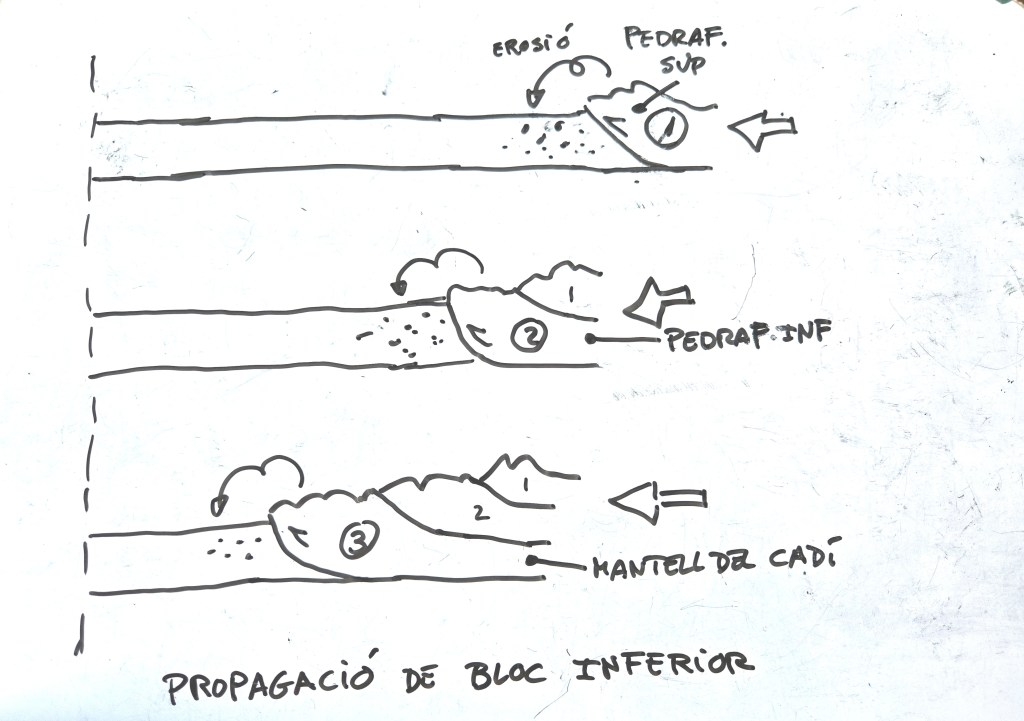 Malgrat ser el mantell més “jove”, aquest es troba emplaçat sota els mantells superior i inferior del Pedraforca degut al seu estil de propagació, anomenat de bloc inferior, cosa que fa que el mantell basal sigui el darrer que es mou tot carregant els altres dos a “collibè”.