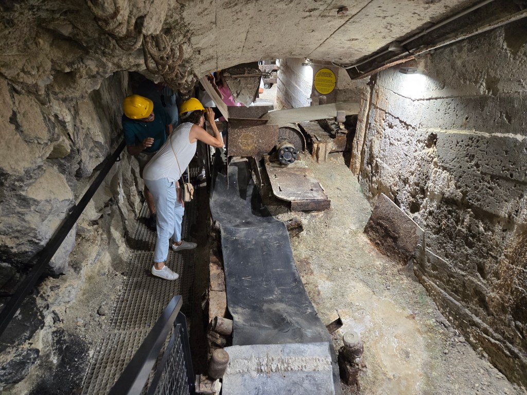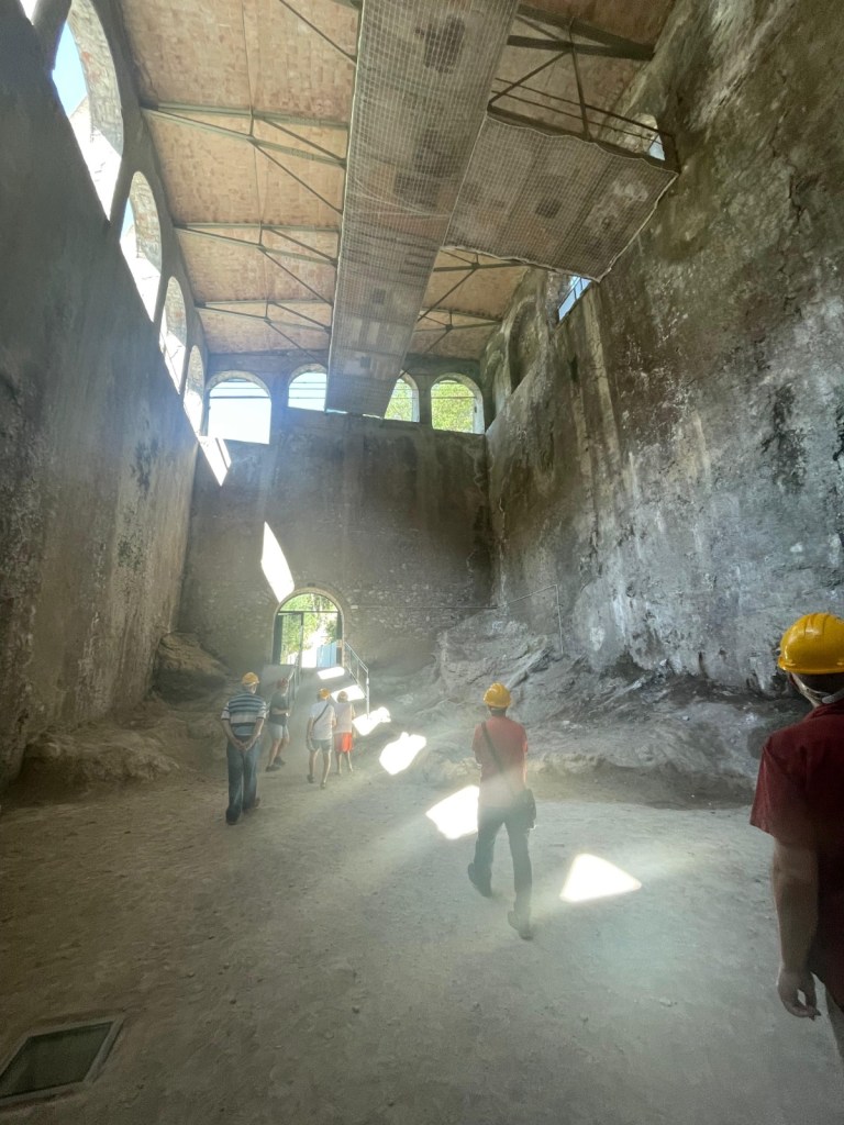 Després de totes aquestes explicacions, ens movem per les entranyes de la fàbrica, on les condicions laborals eren deplorables i la seguretat gairebé nul·la. I accedim al grandiós dipòsit del clínquer, alt com una catedral, on aquest s’emmagatzemava i on encara es poden veure algunes boles enganxades a les seves parets.