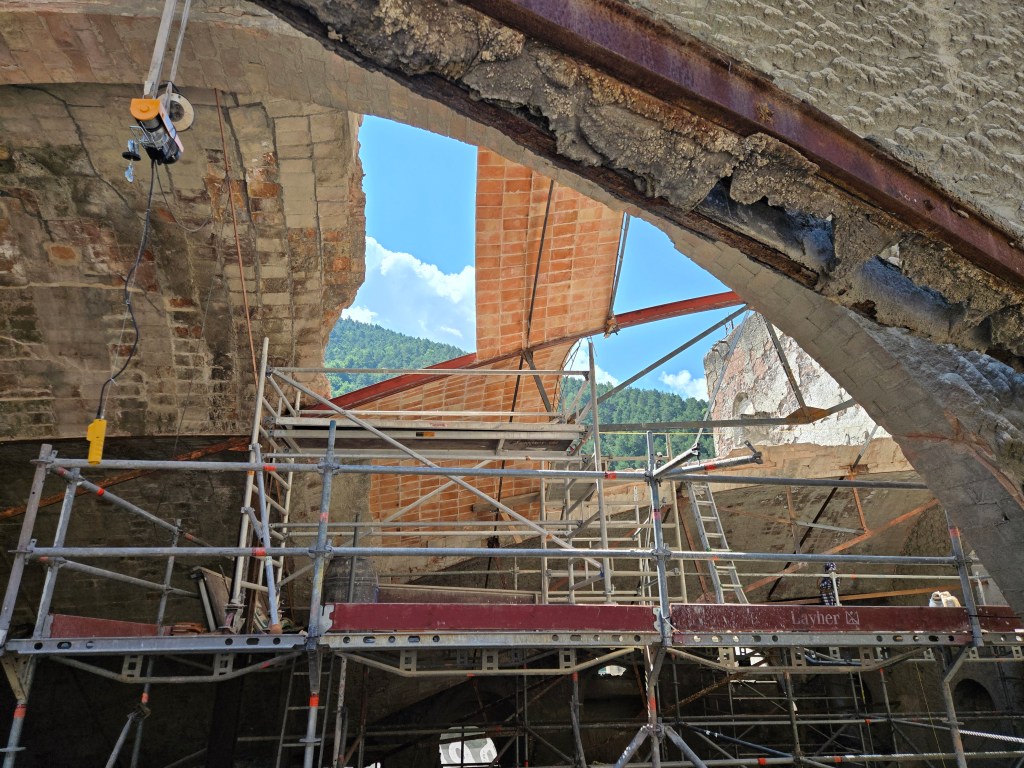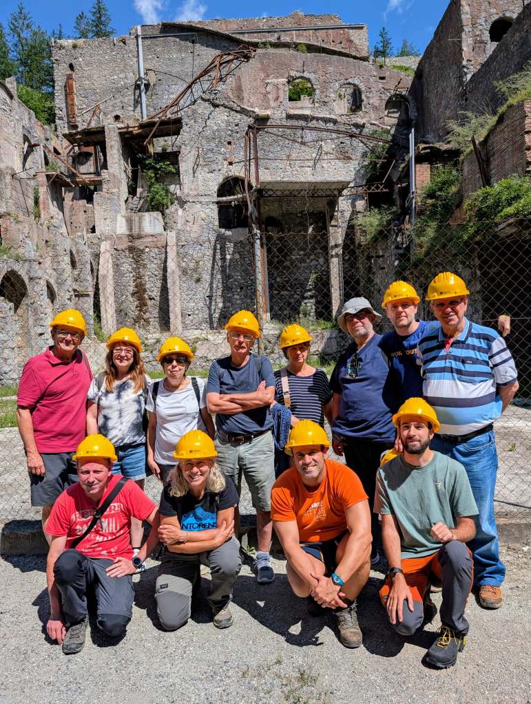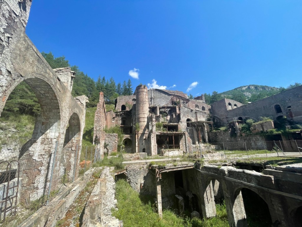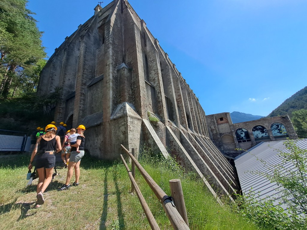 Acte seguit sortim fora per a fer un petit recorregut exterior i on podem veure el penós estat de ruïna en que va quedar la fàbrica després del seu tancament definitiu l’any 1975. Avui dia, però, es duen a terme tasques de reconstrucció d’algunes estances i la consolidació d’alguns murs per a fer més segura la seva visita. Aquí aprofitem per a fer-nos una simpàtica foto de grup per a tenir-ne un bon record.