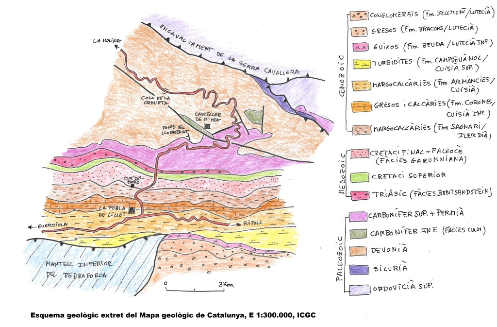 Just abans d’entrar al museu, fem una petita introducció geològica de la zona, ja que avui seguirem el tercer itinerari proposat per Albert Martínez i Marc Tudela a la seva guia Els tresors geològics del Parc Natural del Cadí-Moixeró (editat per Itineraris Geològics).