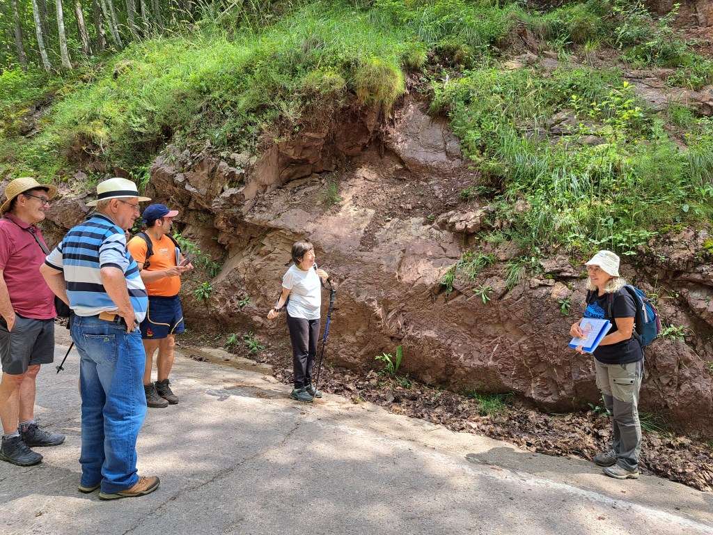 Així que sortim del Museu del Ciment per la carretera en direcció a Castellar de n’Hug i, poc després, traspassem una barrera rocosa formada per les calcàries lacustres de la fàcies garumniana (Calcàries de Vallcebre), que són les que explotaven a la fàbrica i que ja vam veure al seu dia pels voltants de Fumanya. Tot seguit, pels marges de la carretera ja afloren les argiles, gresos i roques volcàniques del Carbonífer superior i Permià, d’un vistós color vermell i que, després de dinar, anem a observar de prop ja que són determinants a l’hora d’oferir el magnífic naixement del riu Llobregat.
