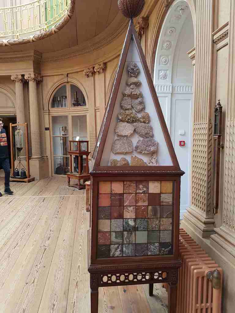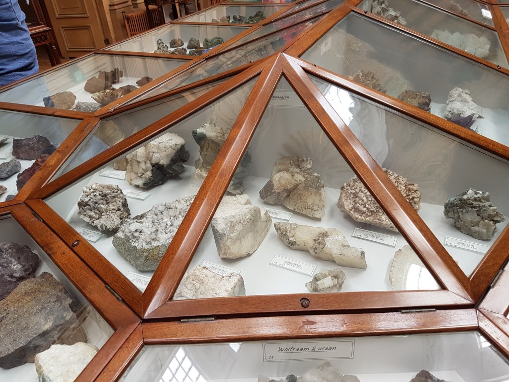 Centrant-nos en l’àmbit que ens interessa, el museu allotja una de les col·leccions de minerals més antigues i valuoses dels Països Baixos. Aquesta col·lecció té els seus orígens en les primeres adquisicions de Pieter Teyler i, sobretot, en el treball del primer director del museu, Martinus van Marum (1750–1837) (foto 7) , un científic apassionat per la geologia i la història natural, que va establir contactes internacionals, va adquirir col·leccions senceres i va promoure l’estudi de la Terra en un moment en què la geologia estava en plena transformació. Durant el segle XVIII i XIX, el museu va reunir milers d’exemplars procedents de col·leccionistes, naturalistes i comerciants europeus.