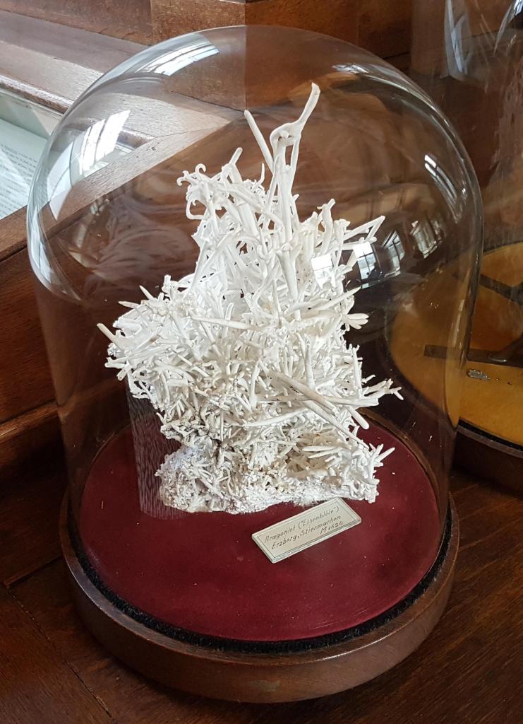 17- Aragonita (flos ferri), Erzberg, Estíria, Àustria. Magnífic exemplar extret de la mina a cel obert de siderita a Erzberg.