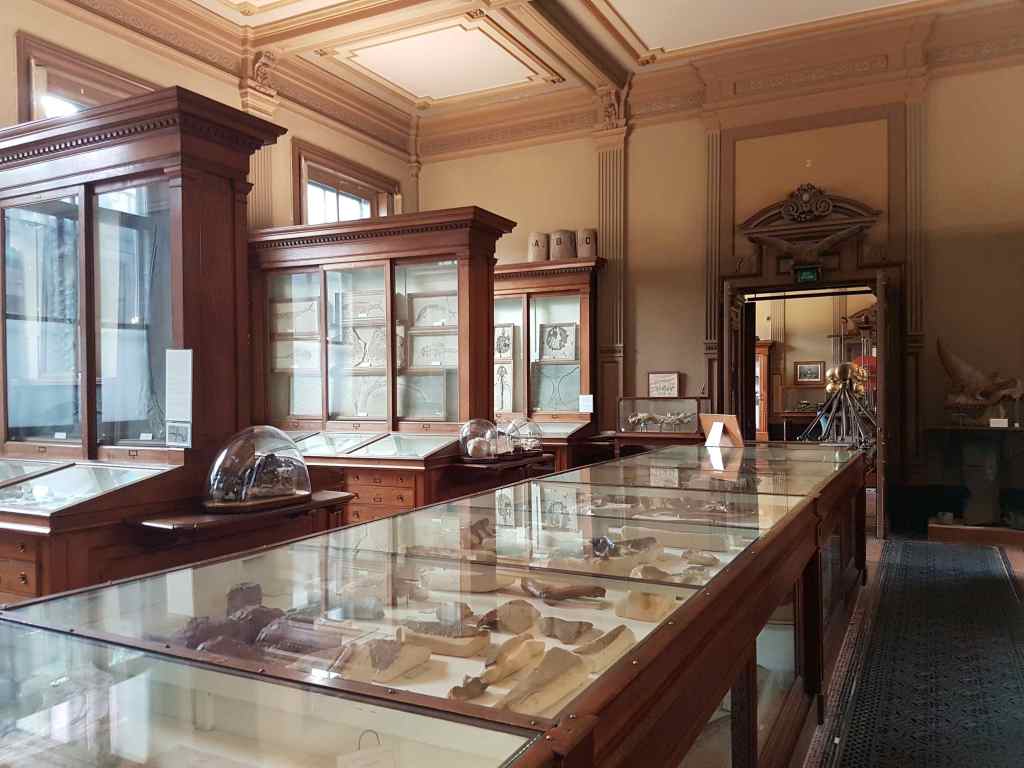 És remarcable també la col·lecció paleontològica (fotos 8 i 9). Des de finals del segle XVIII, el museu va reunir fòssils com a part del seu projecte d’investigació sobre la natura i la Terra; un interès central per als científics de l’època. Tant aquesta col·lecció com la de minerals inclouen exemplars utilitzats en debats científics sobre l’origen de la Terra, la classificació de les roques i la naturalesa dels fòssils, aspectes molt vius en la ciència europea de finals del XVIII i inicis del XIX.