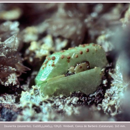 Metazeunerita-kahlerita de la mina “Atrevida”, Vimbodí i Poblet, Conca de Barberà, Catalunya